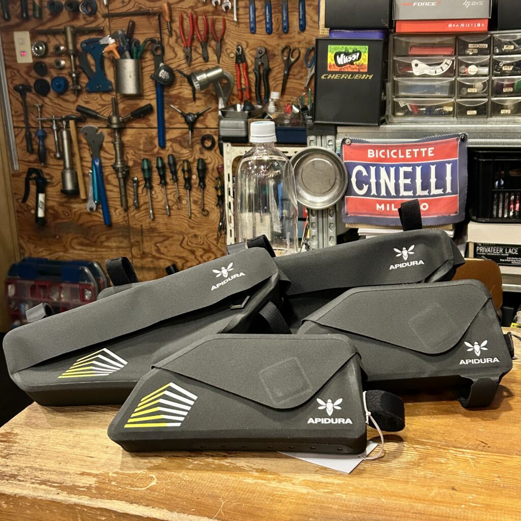 在庫が少なくなっていたAPIDURAのフレームバッグ、トップチューブバッグが再入荷。