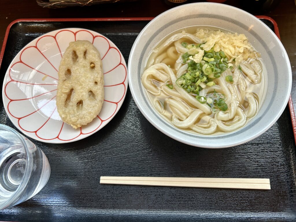 かけうどん(一玉)+ レンコン天ぷら