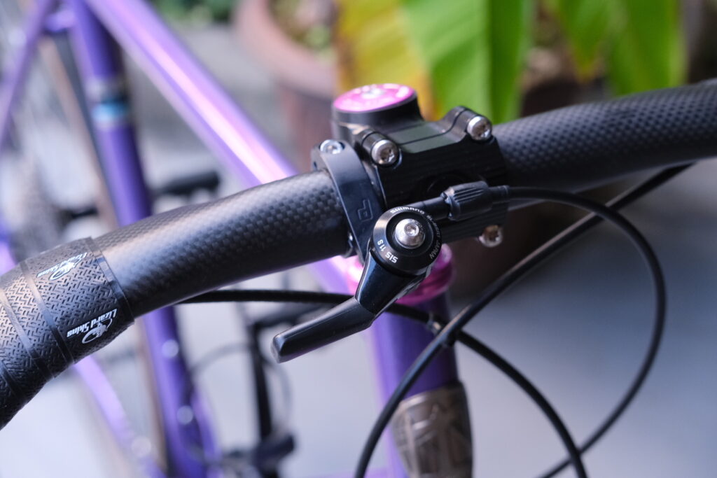 オーナーさまは、これまでお使いのブルホーンバーを気に入っており「ハンドルはそのまま使いたい」ということで、シフターはこの位置に。