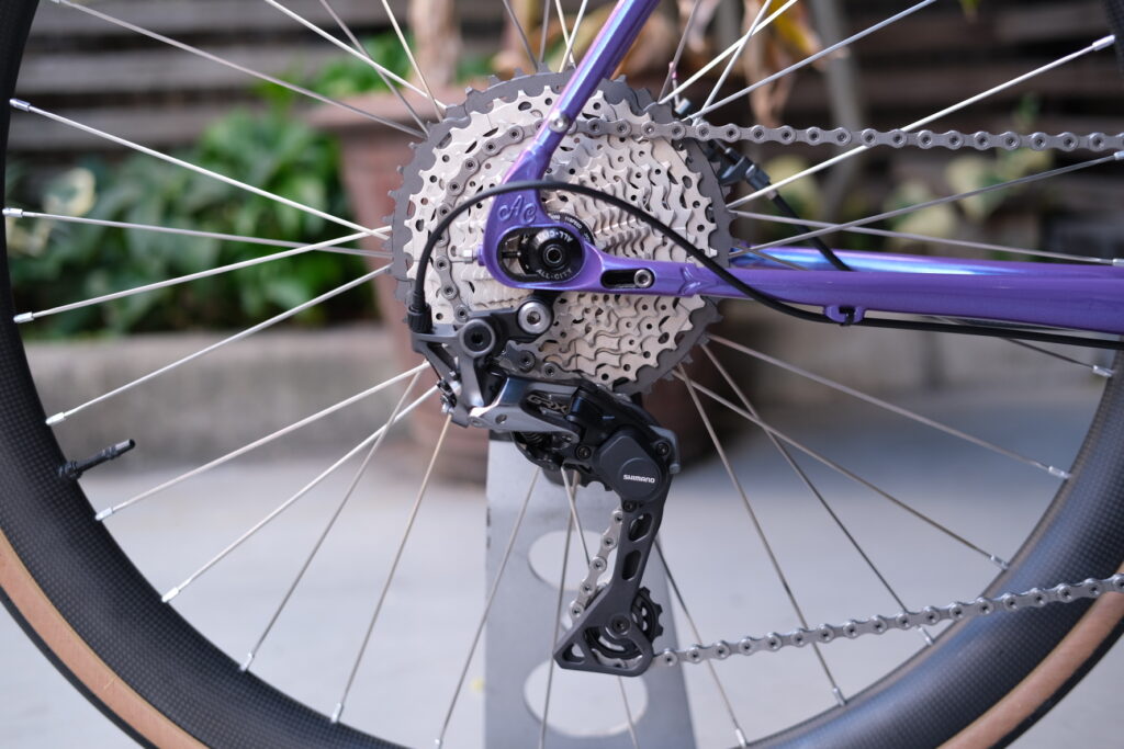 リアエンドをメーカーのリリースするマルチ用のものに交換してGRXのリアディレイラーを取り付け。