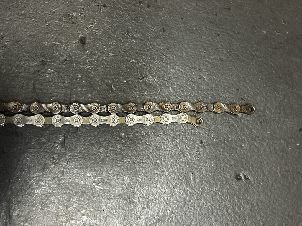 チェーンが伸びるとギアとのピッチが合わなくなり、ギアに噛み合う度に削っていきます。