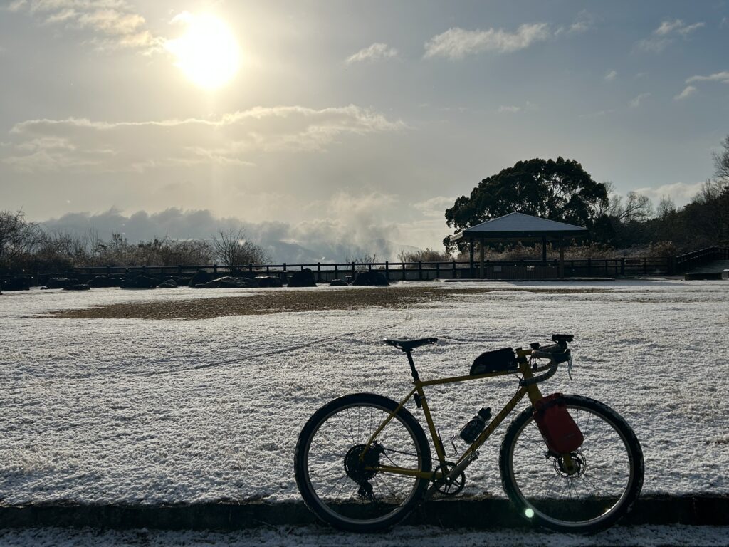 ロードやったら完全にお休みしてたところですが、山遊びにとって、これくらいの雪はスパイス程度のもんですな。